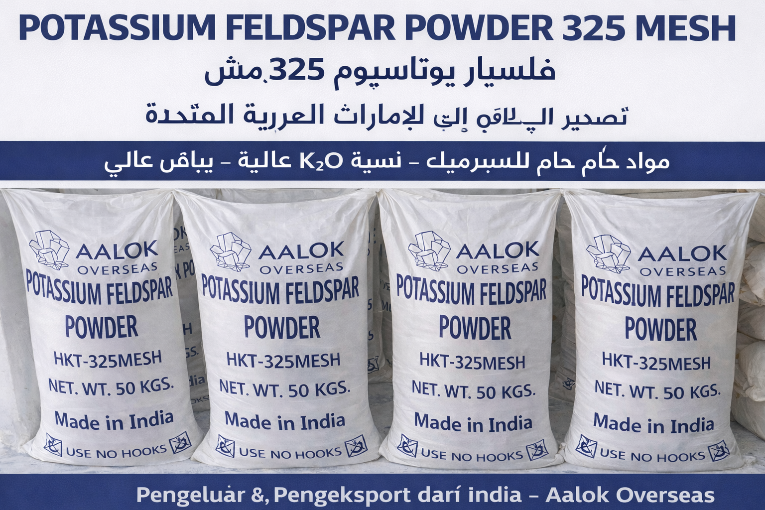 The United Arab Emirates (UAE) is a major hub for construction materials, ceramic tiles, porcelain products, and building materials in the Middle East. With strong infrastructure development and real estate projects across Dubai, Abu Dhabi, Sharjah, and Ras Al Khaimah, the demand for high-quality ceramic raw materials continues to grow. Aalok Overseas is a reliable exporter of ceramic raw materials to the UAE, supplying premium quality Potassium Feldspar, Sodium Feldspar, Quartz Silica, and Muscovite Mica used in ceramic body formulations and glaze production. Our minerals are processed with high whiteness, controlled particle size, and low Fe₂O₃, making them suitable for ceramic tiles, porcelain slabs, sanitaryware, frit and glaze manufacturing. We regularly export materials to UAE manufacturers and distributors through Jebel Ali Port (Dubai), Khalifa Port (Abu Dhabi), and Sharjah Port, supporting the growing demand for مواد خام السيراميك (ceramic raw materials) across the UAE.
